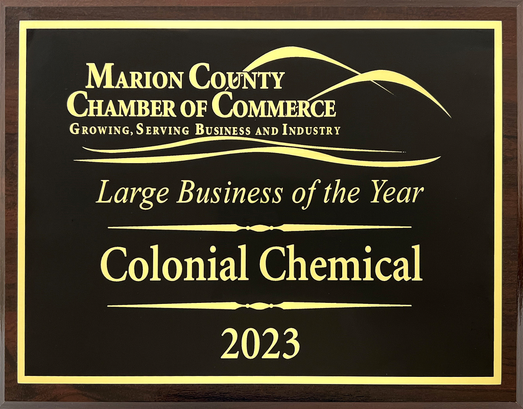 Colonial Chemical was awarded the Marion County Chamber of Commerce’s Large Business of the Year (100+ employees) for 2024. This achievement reflects the company’s ongoing expansion in both market presence, workforce, and throughout the worldwide company, but most notably at…